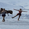 Artistik Buz Pateni Masterlar Dünya Şampiyonu "Altın Kuğu" lakaplı Naz Arıcı ile Masterlar Dünya üçüncüsü Elif Sırma Özel, buz tutan Çıldır Gölü üzerinde atlı kızakların arasında buz pateni yaptı.