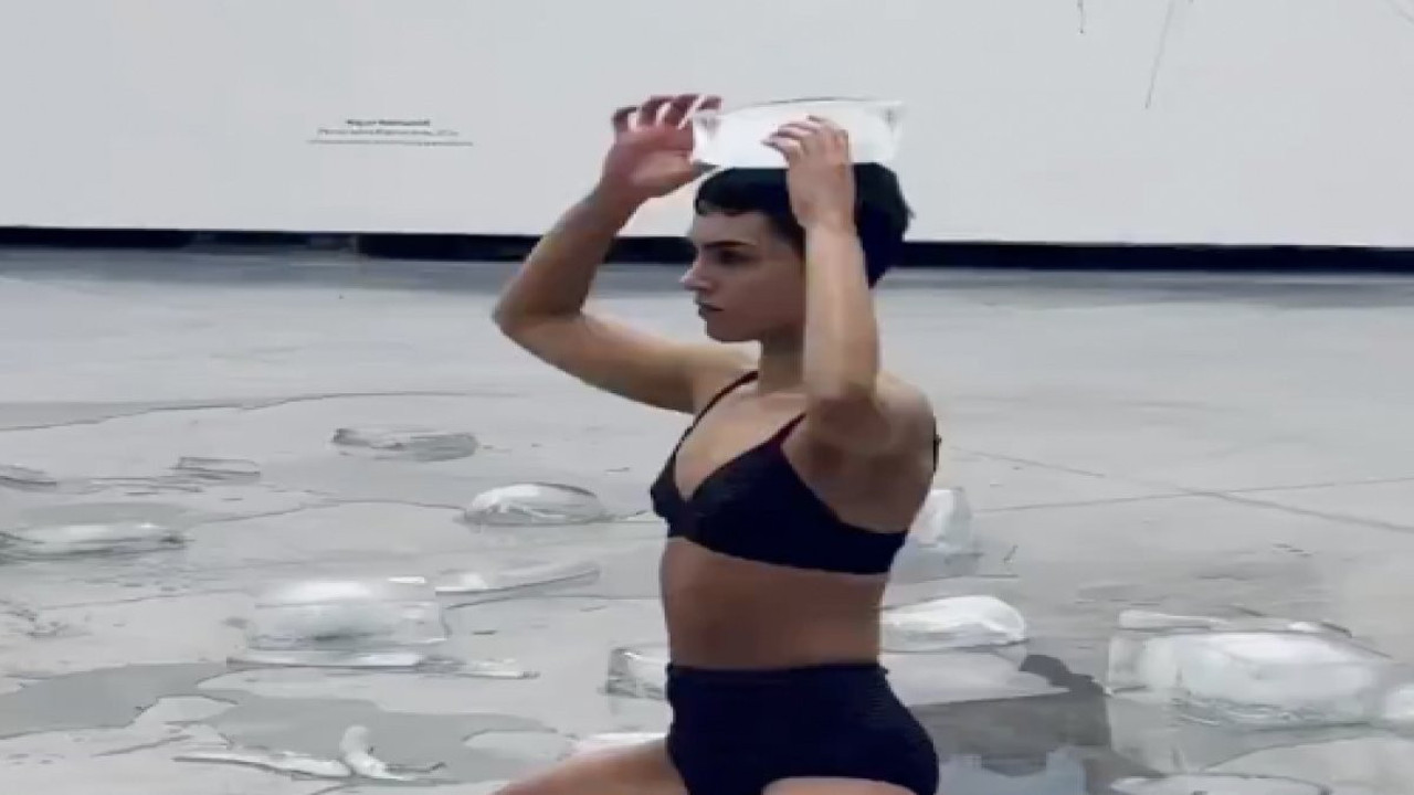 Modern sanat adı altında yapılan birbirinden ilginç etkinlikler gündem olmaya devam ediyor. Bu sefer görüntüler Arjantin'de bir sanat müzesinden. Paylaşılan görüntülerde performans sanatçıları yerdeki büyük buz kütleleri etrafında dolaşıp dans eder gibi ilginç hareketler yapıyorlar, buz kütlelerinin arasında yatıyorlar ya da buzları vücutlarında gezdiriyorlar. Katılımcıların dikkatle izlediği bu performanslar sosyal medyada paylaşılınca modern sanat tanımıyla ilgili yeniden bir tartışma başladı.