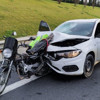 Motosiklet otomobilin önüne saplanırken, motosiklet sürücüsü çarpmanın şiddetiyle savrularak yola düştü. Otomobil yaklaşık 200 metre sonra durabildi.