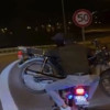 Motosiklet üzerinde motosiklet taşıyan kişilerin hem kendilerini hem de trafiği tehlikeye attığı anlar ise bir başka motosiklet sürücüsü tarafından saniye saniye kaydedildi.