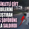 Bu duruma sinirlenen motosikletin arkasındaki kadın, motosikletten hızla inerek kask ile servis şoförüne araç dışından saldırmaya başl