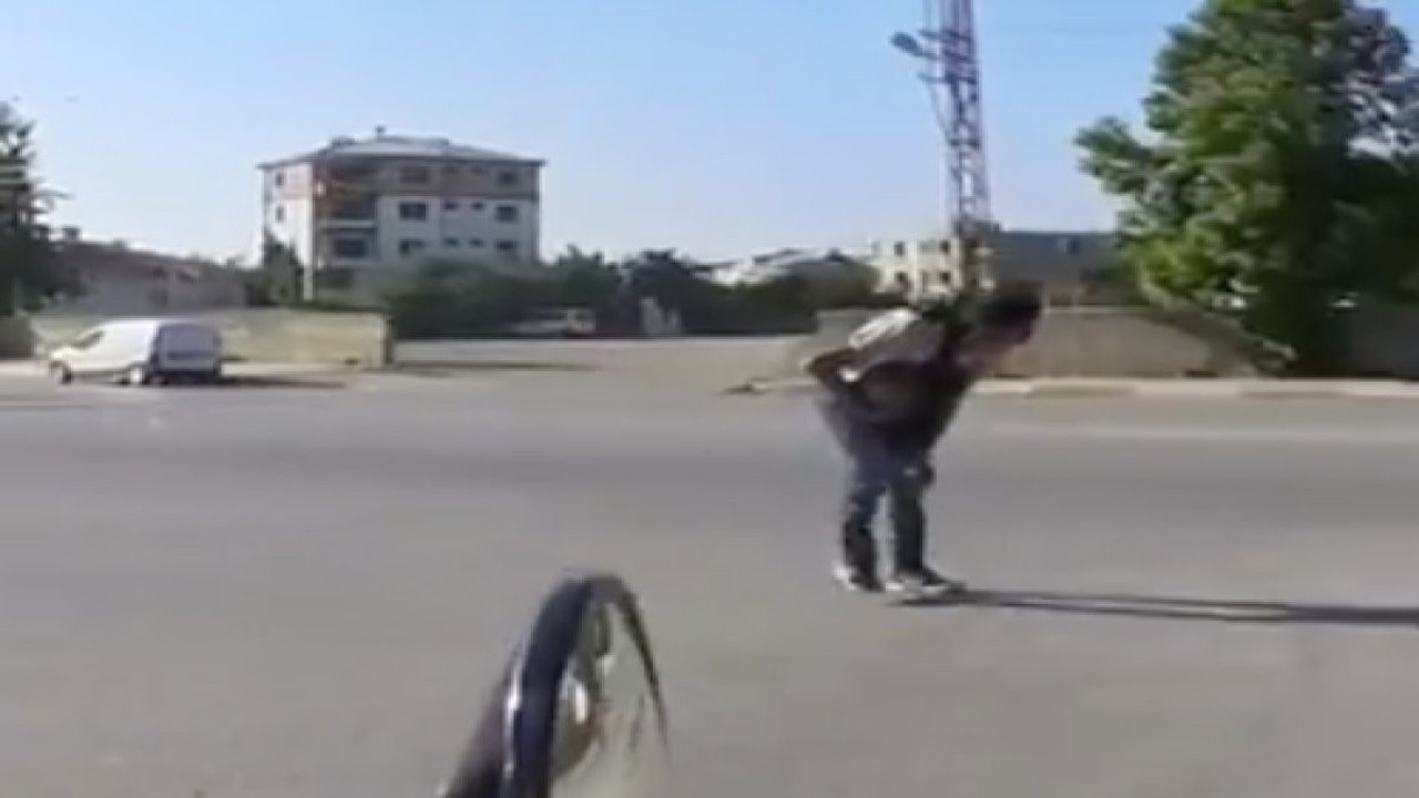 Van’da yaşanan ilginç bir olay, motorcunun kask kamerasına yansıyan görüntülerle gün yüzüne çıktı. Kırmızı ışıkta beklemek yerine hızla geçmeyi tercih eden genç bir bisikletli, yanından geçtiği motorcuya “Abi yarışalım mı” diye seslendi. Ancak genç, bu cesur teklifi yaptıktan sadece saniyeler sonra dengesini kaybederek yere düştü. O anlar, motorcunun kask kamerası tarafından anbean kaydedildi ve sosyal medyada paylaşıldı. Sosyal medyada yayılan video izleyenleri güldürdü.