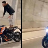 Olay, geçtiğimiz günlerde Üsküdar Çamlıca Tüneli'nde meydana geldi. Bir motosiklet sürücüsü, seyir halindeki motosikletin koltuğuna basarak ayağa kalktı. Hem trafiği tehlikeye atan hem de kendi canını hiçe sayan sürücü, kollarını da açarak uzun süre bu şekilde ilerledi.