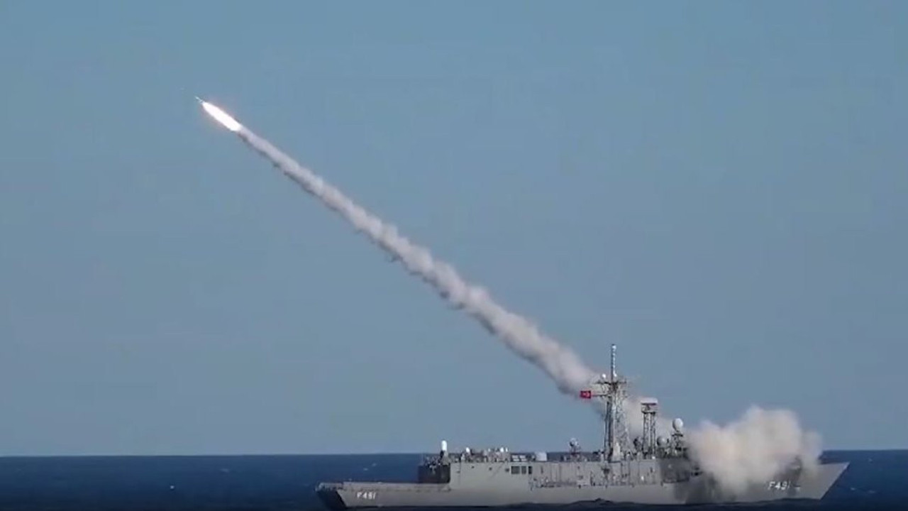 Milli Savunma Bakanlığı Deniz Kurdu-1 tatbikatıyla ilgili yaptığı paylaşımda, fırkateyn ve taarruz helikopterlerinden atılan füzelerin görüntüleri yayınlandı.