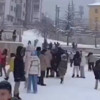 Okul müdürü İsmail Doğangün, derslerin ortasında yaptığı anonsla öğrencileri dışarıya çıkararak kartopu oynamaya davet etti. O anlar cep telefonuyla kaydedildi.