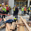 Muğla’nın Marmaris ilçesine bağlı İçmeler Mahallesi’nde özel bir kuruma ait sosyal tesis inşaatında kolona dayalı çelik kalıp işçilerin üzerine düştü.