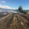 Tarla içindeki yanan anızlara müdahale eden itfaiye ekipleri soğutma çalışması yaptı.
