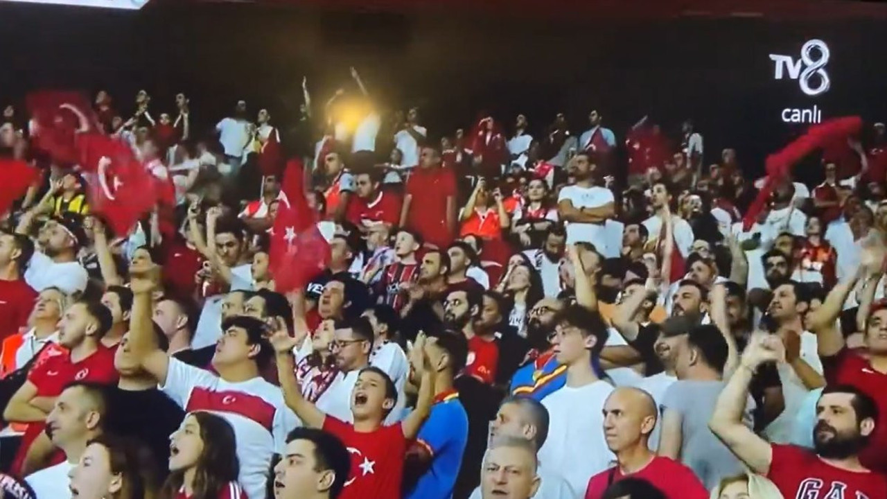İzmir’de Gürsel Aksel Stadyumu’nda saat 21:45’te başlayan maçın başında on binlerce Türk taraftar , hep bir ağızdan “Mustafa Kemal’in askerleriyiz” sloganı attı. O anlar kameralara anbean yansırken, tüm stadyum bu sloganla inledi.