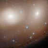 Parlayan gözlerse bir çift süperkütleli karadeliğin çevresinde topladığı çok sayıda yıldızın eseri. Ön kısımdaki mavi yıldızlardan saçılan ışıksa “balkabağını” tüm ışıltısıyla Cadılar Bayramı partisine hazır gibi gösteriyor.