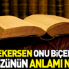 Ne ekersen onu biçersin atasözüyle asıl anlatılmak istenen şey; Bugün yapılan bir hareketin, yapılan bir işin ya da söylenen bir sözün ilerleyen zamanlarda kişinin karşısına çıkabileceğini anlatmak amacıyla kullanılan bir atasözüdür.