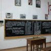 En üstte Atatürk'ün, altında da Rauf Denktaş'ın resimlerinin, kara tahtada da isimlerin yazılı bulunduğu bu ilkokul sınıfı Kuzey Kıbrıs Türk Cumhuriyeti'ndedir.