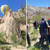 Balondaki 20 turist, yaklaşık 50 metre yükseklikteki kayalıklara indirildi. İhbar üzerine olay yerine AFAD ve itfaiye ekipleri sevk edildi.