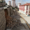 Duvarın çöken kısmına güvenlik şeridi çekilirken enkazın hala durduğu ifade edildi.
