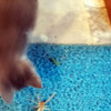 Vatandaşlar tarafından bir restoranın girişinde cep telefonuyla kaydedilen görüntülerde, yavru kedinin örümceği patileriyle ittirme anları ve yaşanan mücadele anbean görüntülendi.