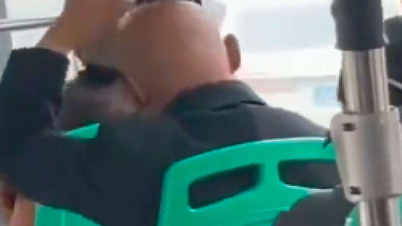 Belediye otobüsünde saçı olmayan bir vatandaşın elindeki tarakla saçını taramaya çalışması sosyal medyada gündem oldu