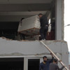 5 kişilik çalışma ekibiyle ince bir tahta üzerinde koltukları taşıyan vatandaşlar yıkılmak üzere olan binadan koltukları tahliye ederken, o anlar kameralara saniye saniye kameralara yansıdı.