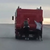 Seyir halindeyken gençlerden birisinin düşmesi ve arkadaki aracın çarpmadan son anda durması da görüntüde yer aldı.