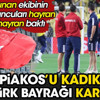 Bu arada Olympiakos oyuncuları ısınma öncesi sahayı kontrol etti. Bu sırada onları tribünde sallanan dev Türk Bayrağı karşıladı.