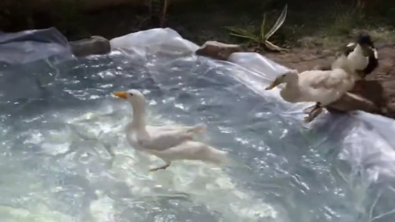 Sıcak yaz günlerinde serinlemek herkesin hakkı! Bir sosyal medya kullanıcısı, bahçesindeki ördeklerin sıcaktan bunalmalarını önlemek için yaratıcı bir çözüm buldu. Naylon branda kullanarak bahçesine küçük bir havuz yapan kullanıcı, ördeklerin serinlemek için suya girip çıkmalarını sağladı.