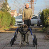 Çok sayıda farklı köpeğin bakımını üstlenen Canlı, köpeği için demirden 4 tekerlekli yürüteç yaptırdı. 15 aylık köpek, bu sayede yeniden yürümeye başladı.