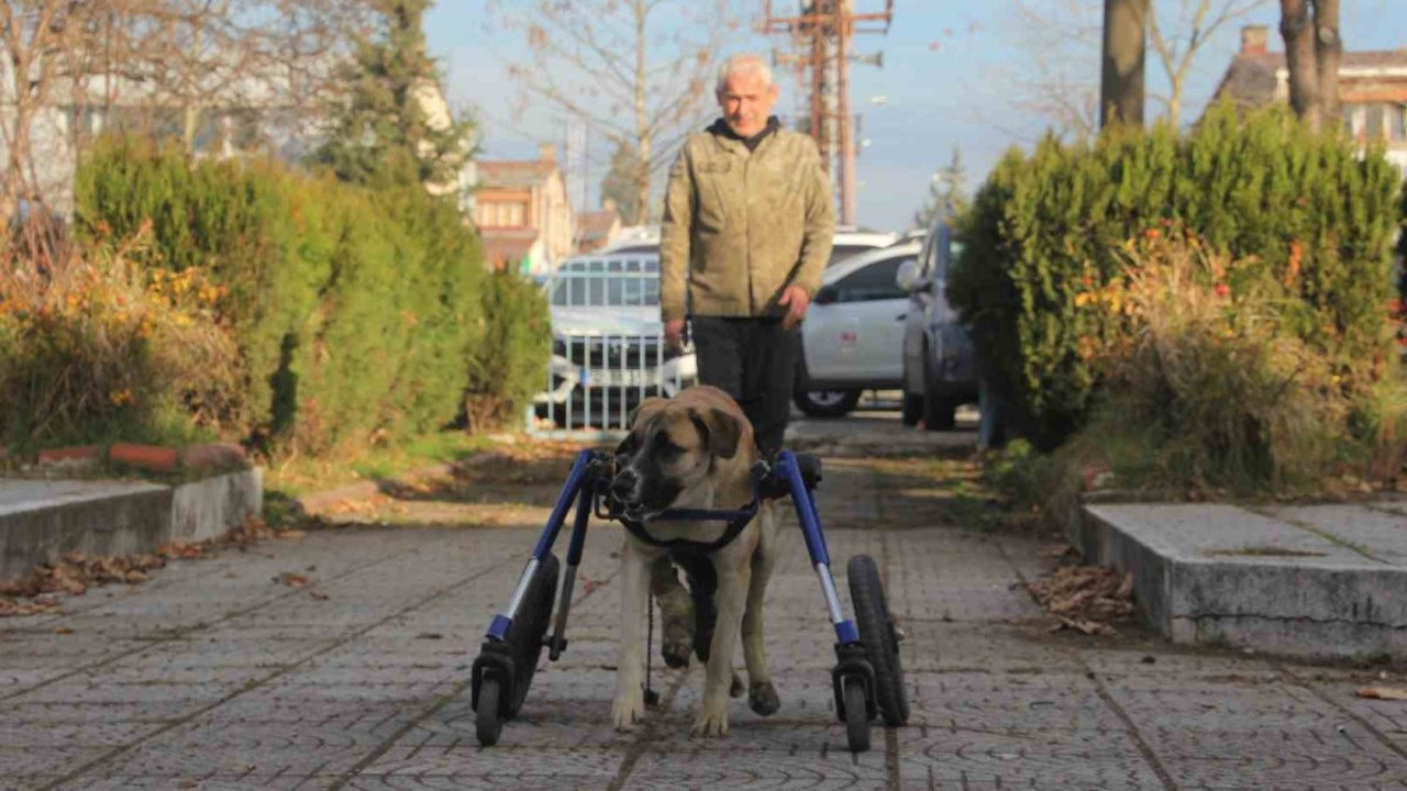 Veterinere götürülen köpeğin, arka ayaklarının yürüme fonksiyonunu kaybettiği belirlendi. Köpek, yaptırılan 4 tekerlekli yürüteç ile yeniden hayata bağlandı.