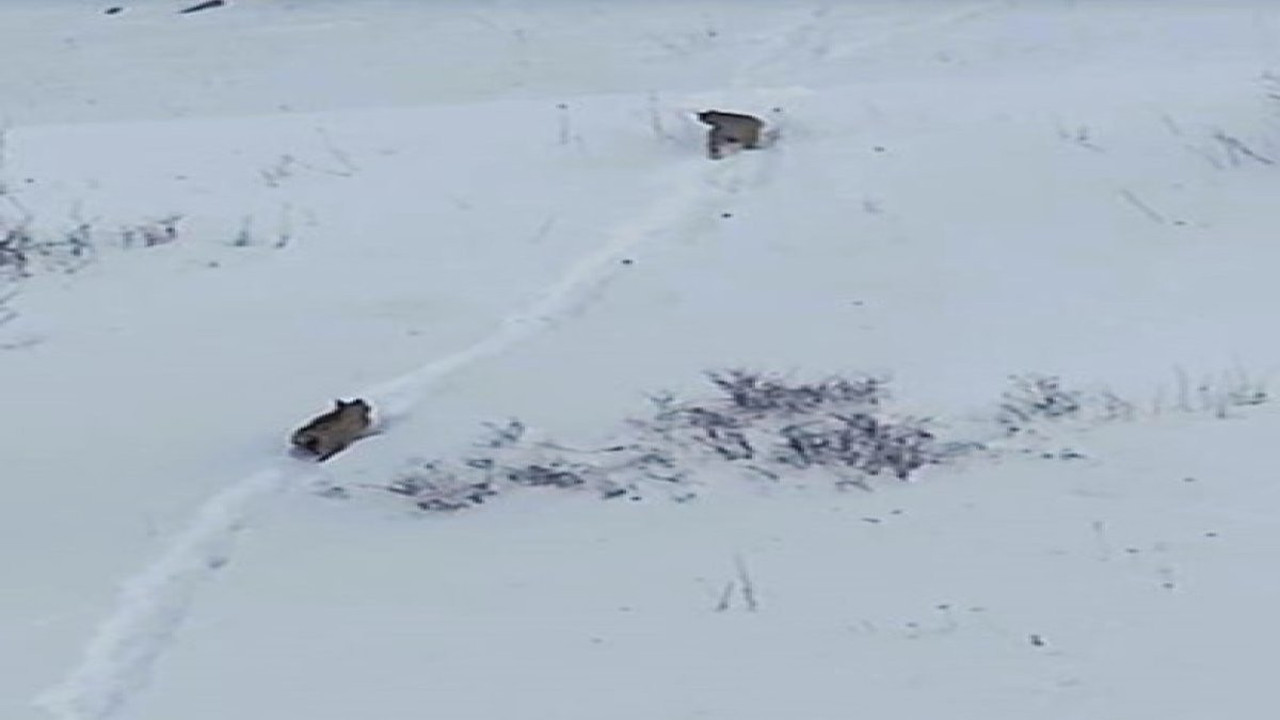 Köyde yaşayan Fatih Bilgin tarafından cep telefonu kamerası ile görüntülenen vaşak, karlı arazide peş peşe dağa tırmanıp, daha sonra gözden kayboldu.