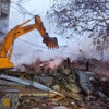 Kahramanmaraş''ta meydana gelen depremi sırasındaOsmaniye''deyıkılan 9 katlı binada çıkan yangına ekipler müdahale ediyor.