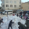 Kar kütlelerinin üzerinde kar topu oynayan öğrenciler Belediye Başkanı Ömer Tarhan''a teşekkür etti.