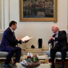 Osmanlı Hanedanı fertlerine, İstanbul'un kurtuluşunun 97'nci yıldönümünü kutlayacağımız 6 Ekim'de halka açılacak tablonun gösterimini yapan İmamoğlu, sonrasında konuklarını makam odasında misafir etti.