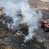 Zarar gören alanlar dron ile görüntülenirken bölgede soğutma çalışmaları sürüyor.