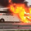 İHA'nın haberine göre, sabah saatlerinde TEM otoyolu Damlama mevkii Adana istikametinde E.K.'nin sürücülüğünü yaptığı 01 AJZ 590 plakalı yolcu otobüsünün motor kısmı yanmaya başladı.