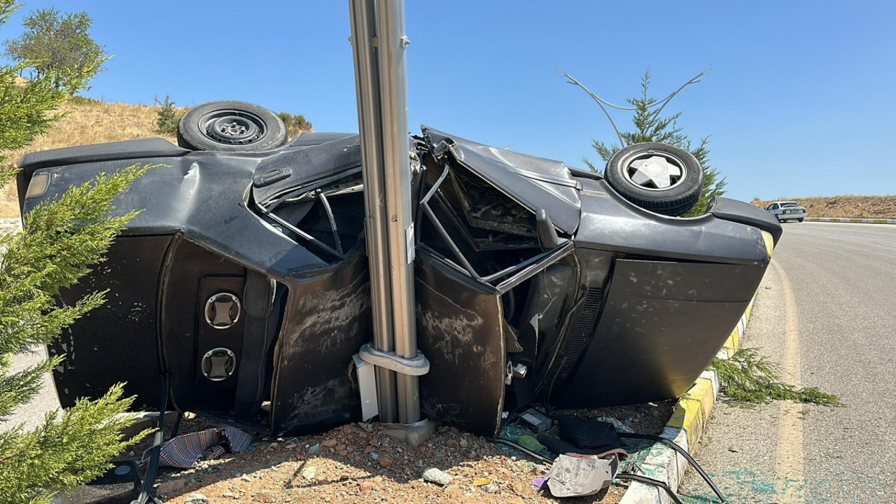 Otomobil, orta refüje çıktıktan sonra bir süre ilerledikten sonra aydınlatma direğine çarparak durdu.