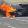 Çarpışmanın şiddetiyle kamyon yan yatarken, LPG'li otomobil ise alev topuna döndü. Alev alev yanmaya başlayan otomobil sürücüsünü ise yanmaktan son anda devrilen kamyonetin sürücüsü kurtardı. Yaralanan otomobil sürücüsü ambulansla hastaneye sevk edilirken, jandarma ekipleri yolu trafiğe kapatarak güvenlik önlemi aldı.