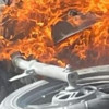 Çarpışmanın etkisi ile savrulan motosiklet yanmaya başlarken, sürücüsü ve yanındaki bir kişi yaralandı.