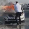 Otomobili emniyet şeridine çeken sürücü, aracından indi. Kısa sürede yangının büyüdüğü otomobilden alevler yükselmeye başladı.
