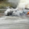 Mersin’in Tarsus ilçesinde otoyolda seyir halinde olan lüks otomobil, motor bölümünde çıkan yangın nedeniyle kullanılamaz hale geldi.