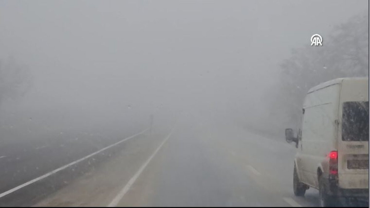 Tüney köyü mevkisinde etkisini artıran sis, görüş mesafesini 100 metreye kadar düşürerek sürücülerin ilerlemesini güçleştiriyor.