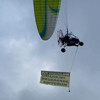 İlknur Malkoç''un eşi Gürkan Malkoç ise kiraladığı paramotorlu paraşütçüyle ''Dolandırıldım, hakkımı havadan da arıyorum’ yazılı afişi kent semalarına dolaştırmaya başladı.