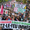 İsrail'in Gazze'ye yönelik saldırılarının sona ermesini ve derhal ateşkes sağlanmasını isteyen göstericiler, "Hepimiz Filistinliyiz", "Katil İsrail, Macron (Fransa Cumhurbaşkanı) suç ortağı" sloganları attı.