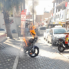 Vatandaşlar, yangın söndürme tüpü ile alevleri söndürdü. Motosiklet kullanılamaz hale geldi.