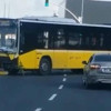 Peronundan kayan İETT otobüsü otomobile çarparak durdu