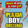 Turks ve Caicos'ta vücudunu sergileyen Khloe Kardashian boncuklu plaj elbisesi ve iddialı mayo seçimiyle plajda boy gösterdi.