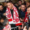 Taraftarlar futbolcuya tezahüratta bulunurken, Podolski boynuna kırmızı beyaz atkıyı taktı. Yıldız futbolcu yoğun ilgi nedeniyle kendisini bekleyen araca güçlükle ilerleyebildi.