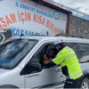 Kağızman’daki İlçe Emniyet Müdürlüğü ekipleri, Kars-Kağızman karayolundaki uygulama noktasında sürücülere trafik kurallarını hatırlattı ve araç içindekiler için şeker ve kolonya dağıttı.