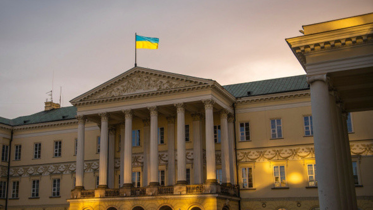 Varşova'da devlet binalarına Ukrayna bayrağının renkleri yansıtıldı