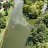 Porsuk Çayı'nın Odunpazarı ilçesi, Gökmeydan Mahallesi'ndeki bölümünde yoğun yosun tabakası havadan görüntülendi.