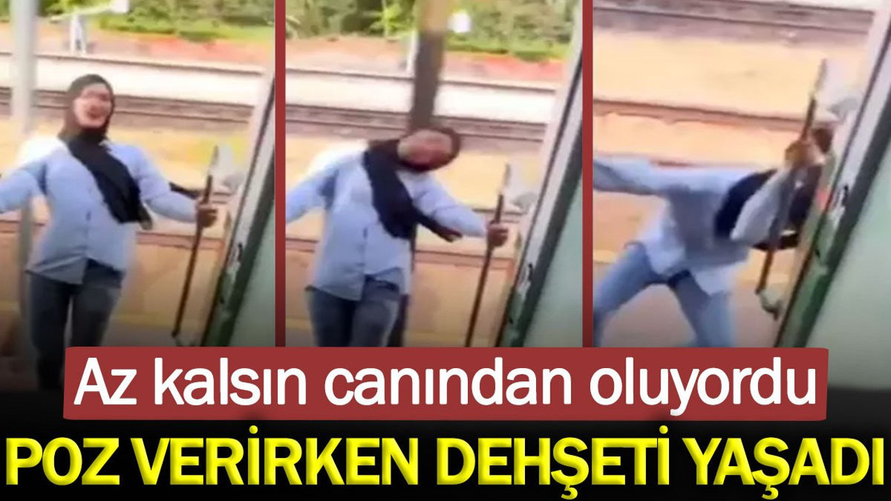 Tayland'da hareket halindeki trenden sarkarak poz veren genç kız, fotoğraf çektirme merakı nedeniyle az kalsın hayatından oluyordu.