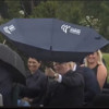 Johnson, şemsiyeyi açmayı başarabildiği an, ıslandığını fark ettiği İçişleri Bakanı Priti Patel''e teklif etti, ancak Patel şemsiyeyi istemedi. Tam her şey yoluna girmişken, bu kez de kuvvetli rüzgar şemsiyeyi ters çevirdi.