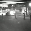 Güvenlik kamera kayıtlarında, bir eve ateş eden silahlı kişilerin bir süre sonra araca bindiği ancak birkaç metre ilerledikten sonra arabanın patladığı görülüyor.