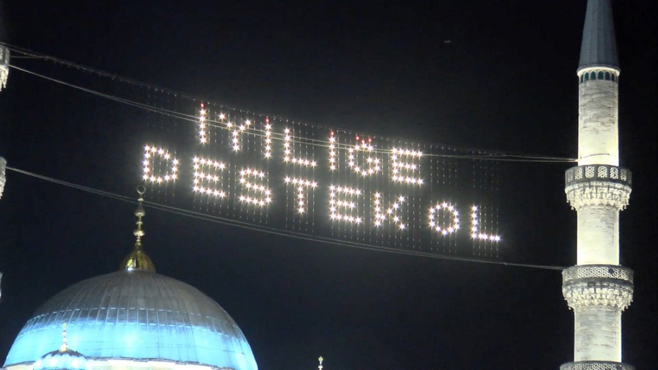 Havanın kararmasıyla camilere asılan mahyalar yakıldı. Camilere asılan mahyaları görenler bol bol fotoğraf çekti. Ayasofya-i Kebir Cami-i Şerifi'ne asılan mahyayı gören turistler, " Azerbaycan kardeş ülkeden geldik. İnşallah uğurlu olsun Ramazanımız, her birimize kısmet olsun oruçlarımızı tutmayı. Allah güç kuvvet versin" diye konuştu.